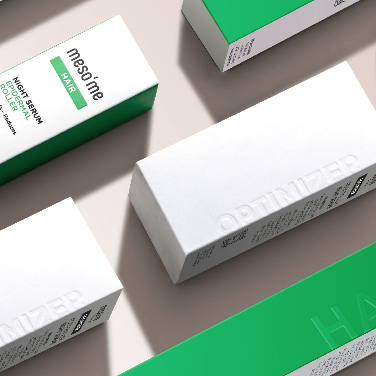 Meso'me Hair est un traitement complet de mésothérapie composé d'un dermaroller contenant un sérum riche en nutriments, visant à réduire la chute de cheveux tout en stimulant la croissance capillaire.